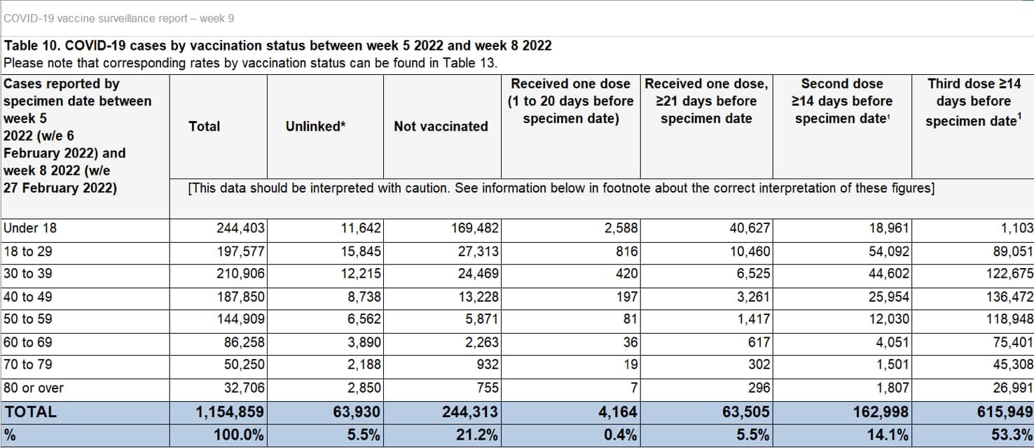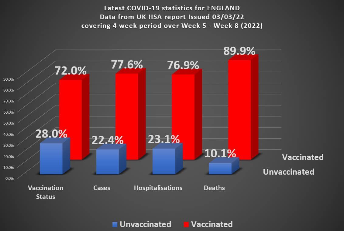 Die Narrative brechen langsam, doch unaufhaltsam zusammen. 89,9 % der COVID-19 Todesfälle, die letzten Monat in England gemeldet wurden, entfielen auf die Geimpften (Vaccinated) wenn man sich den «COVID-19 Vaccine Surveillance Report» anschaut: