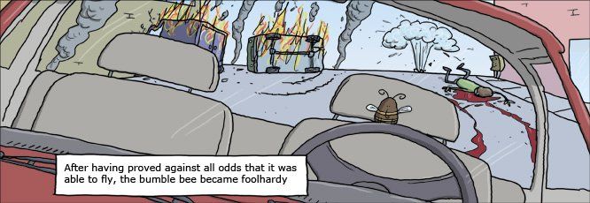 Allen Widrigkeiten zum Trotz, war es erwiesen, dass die Hummel in der Lage ist zu fliegen, doch dann wurde sie waghalsig