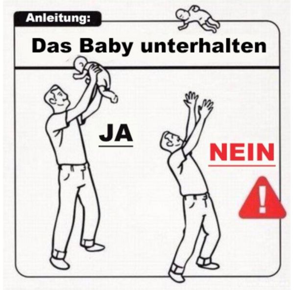 Diese wertvolle Hinweise für den Umgang mit Babys hatte ich vor gefühlten drölfmillionen Jahren bereits auf englisch in der Gruft, find sie aber gerade nicht… Also hier nochmals das Wichtigste im Umgang mit Babys. Als werdender Vater hat man es schliesslich nicht einfach, da ist es doch gut zu wissen, dass es solche praktischen Ratgeber gibt