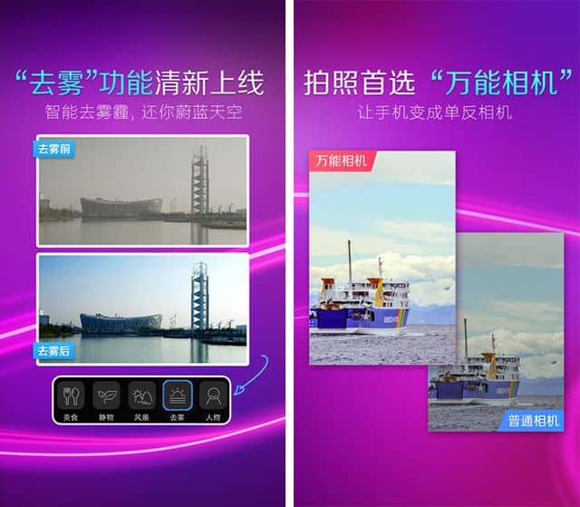 Die Kamera-Appvon Xiamen Meitu Technology aus China mit eingebauter «DeSmog»-Funktion verwandelt versmogeten, rauchigen Himmel in strahlend blauen. Offensichtlich eine einfache Auto-Tonwertkorrektur mit Anhebung der Blautöne. Das chinesische Original gibts bei iTunes-China: 美图秀秀…