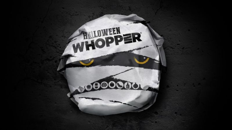 Für die diesjährige Halloween-Kampagne von Burger King wurde das Team von Turner Duckworth angefragt, das Design für das Packaging zu entwerfen. So kreierten sie zusammen mit dem Illustrator Geoffrey Appleton diese «Kostüme» für Fast Food. Das Highlight ist wohl der schwarze Halloween Whopper, der eine Verpackung im Look einer Mumie bekam. Aber auch die Chicken Fries erhielten drei neue Gewänder und kommen als Electrifries, Frankenfries oder Mortifries auf den Tisch. Schlussendlich wurde auch die Krone aus Pappe und der Kaffee-Becher für Halloween modifiziert. Dieses Halloween-Special findet noch übers Wochenende in einigen Filialen in Deutschland statt, die Liste der teilnehmenden Restaurants findet sich hier.