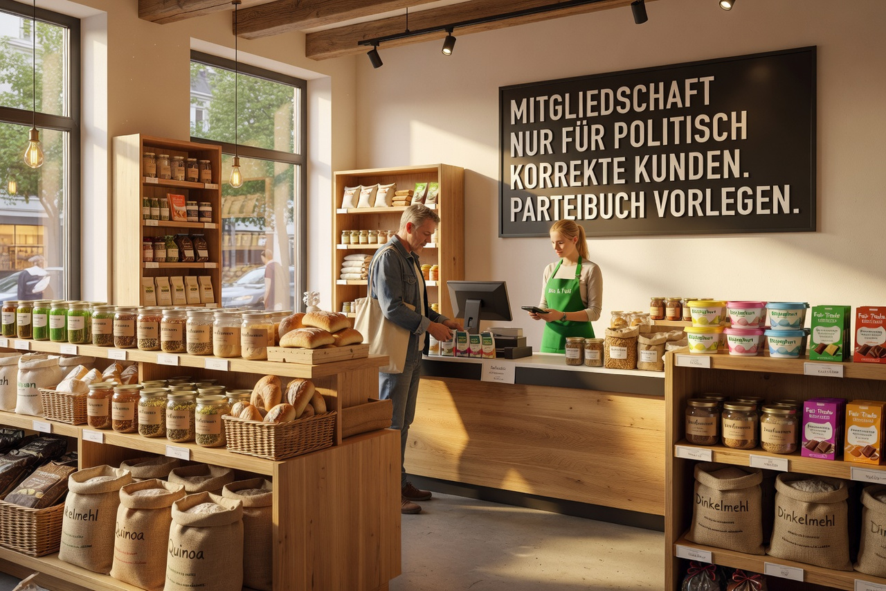 Das eigentlich Faszinierende an diesem Modell ist seine wirtschaftliche Eleganz: Man schliesst politisch Unerwünschte aus der Gemeinschaft aus – und kassiert trotzdem ihr Geld. AfD-Wähler kaufen Biojoghurt. Ihr Euro ist willkommen, ihre Meinung nicht. Das nennt man in der Betriebswirtschaft Kundensegmentierung. In der Ethik nennt man es etwas anderes, aber die spielt im Biosegment ohnehin nur eine dekorative Rolle, irgendwo zwischen Hanfseife und Fair-Trade-Aufklebern.