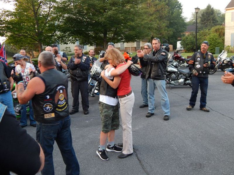 Lokale Motorradclubs, bekannt für ihre Unterstützung der US-Truppen und Veteranen, hatten über Facebook von Sean’s ersten Tag an der High School gehört. In nur zwei Tagen gelang es ihnen, eine ganz besondere Begleitung für Sean’s ersten Tag in der Schule zu organisieren. Und so standen am Morgen des 1. September Dutzende Biker vor Sean’s Haus. Die ganze Nachbarschaft stand plötzlich ebenfalls vor ihren Häusern, um den unglaubliche Moment zu erleben, wie Sean auf seine neuen Biker-Freunde traf.