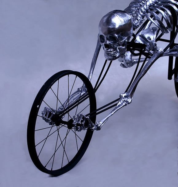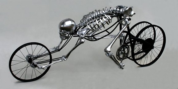 Diese Metallskulptur von Jud Turner, bei der eigentlich nur noch Sattel, Lenker und Pedale fehlen, um für grosse Augen und Kinnladen auf dem Boden zu sorgen. «Yo, we heard you like skeletons, so we put a skeleton on your bicycle and called it «Bio-Cycle». You’ve been officially pimped!» wäre wohl Xzibits Spruch