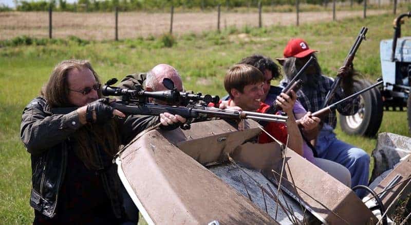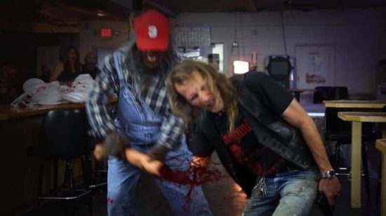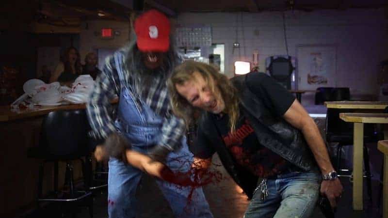 Mit einem Make-up-Design, das es Bubba ermöglicht, der erste filmische Werwolf zu sein, der tatsächlich lächeln kann, während er tötet, weiss die Produktion mit einer coolen Kombination aus praktischen und computergenerierten Effekten zu unterhalten. Clevere Details und gutmütige Seitenhiebe in Richtung Kleinstadtleben schaffen es, die Geschichte in Gang zu halten. Dabei fühlt man sich an Samstagmorgen-Cartoons erinnert – die wirklich gewalttätigen, bevor die Sender entschieden, dass Kinder den Unterschied zwischen Zeichentrick und Realverfilmung nicht erkennen können – kombiniert mit ein paar strategisch gut platzierten Seitenhieben. Atmosphärisch passend gibt es dazu einen stimmigen Mix aus Original Country-Songs und ein paar extra komponierten Countrypunk-Tunes. Vor allem der Titelsong ragt schon textlich heraus, wenn Bubba, der Redneck Werwolf als dumm aber liebenswert beschrieben wird. Funktionieren tut das Ganze, weil man den Machern trotz oder gerade wegen ihrer Limitiertheit im Budget die Leidenschaft jede Sekunde ansieht. Das Gleiche gilt für die Darsteller. Denn man muss solche Dummbaze eben auch erst einmal überzeugend darstellen und das macht vor allem Malone Thomas als Bobbie-Jo herausragend. Sie bildet praktisch den Mittelpunkt des Films. Gerade die Verkörperung der Südstaaten-Schönheit mit überschaubarem Intellekt hätte ganz furchtbar in die Hose gehen können. Thomas‘ Darstellung der stereotypen Redneck-Lady trifft den Nagel aber auf den Kopf.