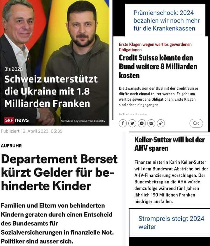 Der Schweizer Bundesrat scheint fremdgesteuert zu sein und verschleudert Milliarden von Steuergeldern für Unmengen von Impfdosen, die dann vernichtet werden müssen, für Banken, die ohne Konsequenzen Misswirtschaft betreiben können und für eine korrupte Regierung in der Ukraine, bei der man nicht weiss, wo das Geld landet, sicher nicht bei der normalen Bevölkerung. Alles wunderbare Beispiele dafür, was passiert, wenn diejenigen, die regieren, selbst von Angst beherrscht werden und Entscheidungen unter Druck treffen. Keine Weisheit, kein Sinn für Zusammenhänge, kein Sinn für die Gemeinschaft oder für das Allgemeinwohl.