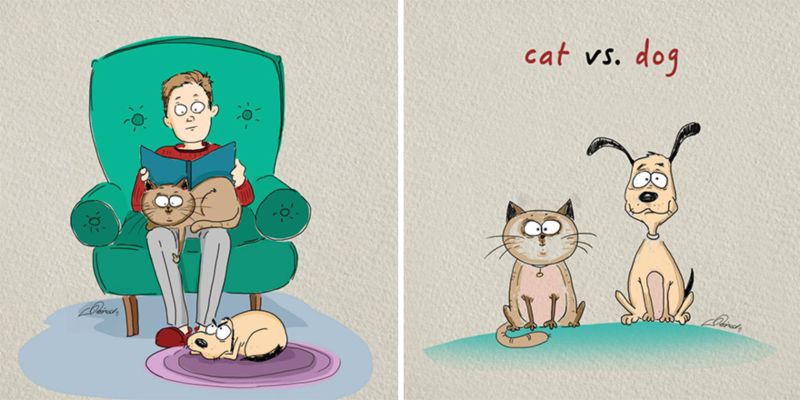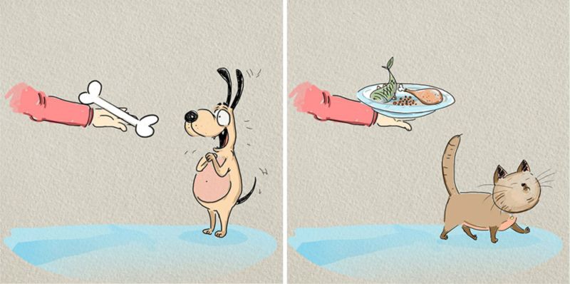 Es ist ein nie endender Kampf zwischen dem, was ist besser, Katzen oder Hunde, und Moskau lebende Künstlerin Vogel Born Die Illustrationen werden wahrscheinlich noch mehr Öl ins Feuer zu gießen. Er beschloss, 6 große Unterschiede zwischen unseren geliebten Vierbeiner zeigen.