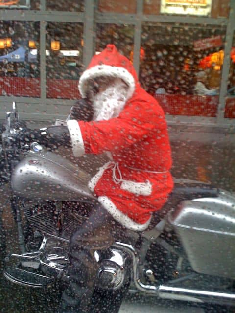 Nicht nur in Illustrationen und Comics ist der Chlous auf dem Bike unterwegs…