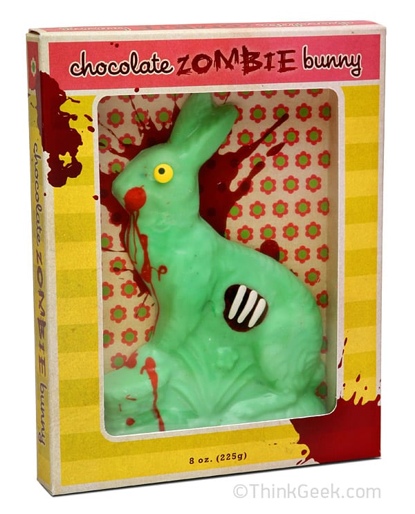 Passend zum heutigen Tage kann man diesen grossartigen Zombie Schoko Hasen für $11.99 bei ThinkGeek ordnern und den lieben Kleinen ins Nestchen stellen