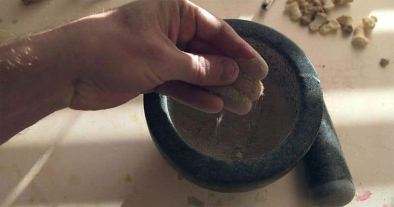 With a background in ceramics, I knew that bone ash was a common ingredient in glaze so I developed a special recipe using typical ingredients like clay, silica, and feldspar, and added my freshly fired, crushed and powdered human bone ash.