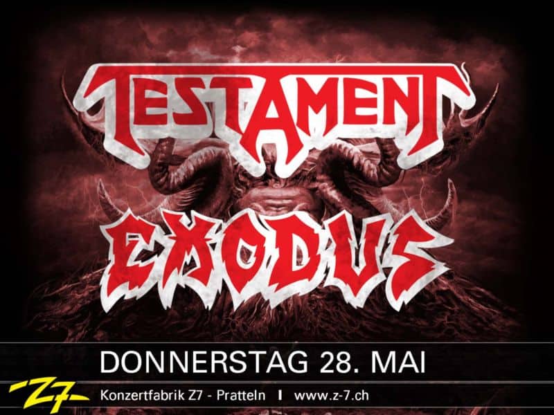 Im beliebtesten Metal-Schuppen der Schweiz, dem Z7 in Pratteln, gaben sich Ende Mai 2015 die Thrash-Metal-Urgesteine Exodus und Testament die Ehre. Obwohl sie in der Szene genauso respektiert sind wie Metallica, Megadeth, Slayer und Anthrax, haben sie nie den grossen Erfolg erleben dürfen und das obwohl die von Kirk Hammett und Schlagzeuger Tom Hunting gegründeten Exodus für viele als die eigentlichen Erfinder des Metal-Subgenres gelten, das Anfang der 80er Jahre in der Bay-Area an US-Westküste ihren Anfang nahm und bald zu einem weltweiten Siegeszug antrat. «Exodus» wurden von Kirk Hammett mitgegründet, der dann nach dem Rauswurf eines gewissen Dave Mustaine (der bekanntlich Megedeth gründete) zu Metallica ging. Ein paar Jahre später stiess Steve Souza von Testament (die damals noch Legacy hiessen) zu Exodus, sein Nachfolger war ein gewisser Chuck Billy. Und Exodus Gitarrist Gary Holt ist inzwischen festes Mitglied bei Slayer und tritt dort in die grossen Fussstapfen des 2013 verstorbenen Jeff Hannemann. Also alles in allem an diesem Abend ein grosses Klassentreffen und die zwei Pioniere des Thrash-Metals liessen das Z7 bis in die Grundmauern beben!