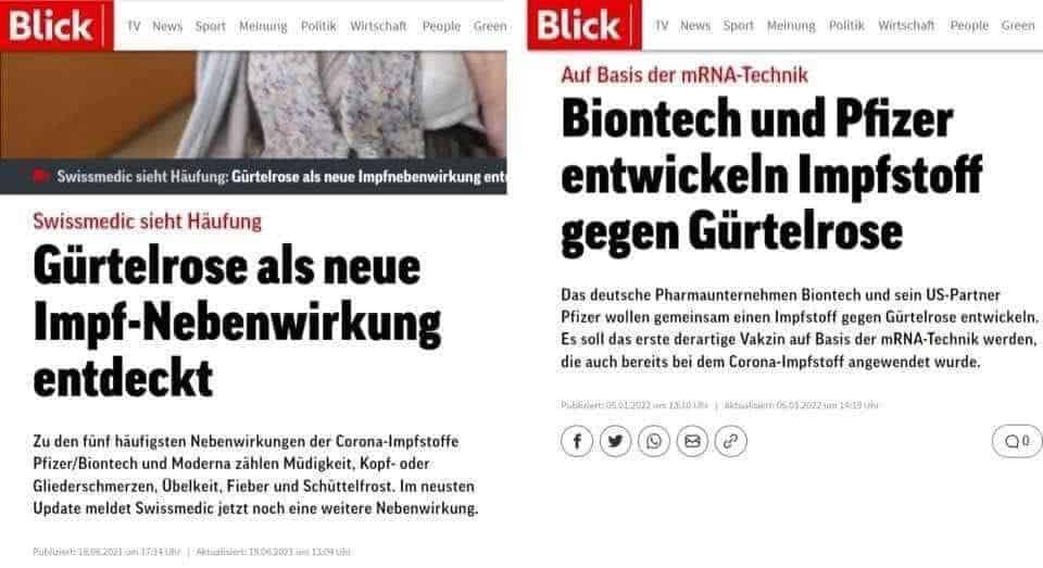Sehr offensichtlich, wie Pfizer und BioNtech den Menschen «helfen» wollen, gesund zu sein: Erst kreieren sie eine Impfung, zu welche sie über korrupte Regierungen und Presse die Menschen zwingen wollen und verdienen sich so eine goldene Nase – um anschliessend im gleichen Stil weiterzumachen und mit den aus den Nebenwirkungen der Impfung resultierenden Krankheiten noch mehr Geld zu machen. Oder sind dies alles reine «Zufälle»? Wer dies glaubt, sollte ernsthaft versuchen sich etwas weiterzubilden in z.B. Markting und psychologische Kriegsführung, Manipulation der Massen, Korruption, Medizin, gesellschaftlichen Prozessen, den Hintergründen der Politik und Lobbyismus. Vielleicht hilft dies dann, etwas mehr zu verstehen…