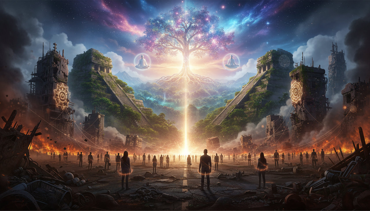 Stell dir eine Welt vor, in der sich die alten Energien der Gier und Angst auflösen, in der Frieden zur Norm wird, einfach weil wir das Bedürfnis nach allem anderen überwunden haben. Dies ist das stille, unaufhaltsame Erwachen, das unsere Vorfahren sahen. Es ist da, und wir erleben es…