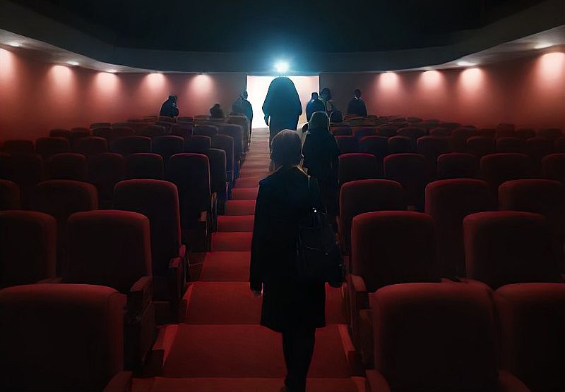 Einige halten bereits einen Spiegel in die Luft… sie wollen herausfinden, woher dieser Film kommt, und wer ihn erzeugt. Doch noch die meisten fühlen sich durch den Schatten im Bild gestört und empören sich: «Stör mich nicht in meinem hypnotischen Schlaf». Langsam und stetig verlassen immer mehr Menschen den Saal. Sie haben genug von diesem Irrsinn und beginnen ihren eigenen Film zu schreiben. Das Höhlengleichnis der heutigen Zeit lässt grüssen…