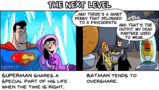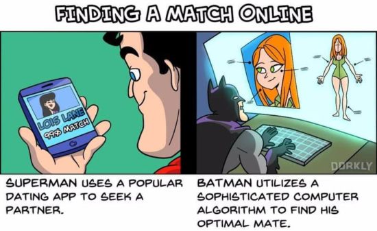Wir alle wissen, dass Bruce Wayne ein Magnet für die Damenwelt ist. Clark Kent war in der Lage sich Lois Lane zu angeln, trotz seines Images als Bauernsohn, und sowohl Batman als auch Superman hatten ein Rendezvous mit Wonder Woman. Doch wie würden die Beiden den idealen menschlichen Lebenspartner suchen? Und vorallem wer hat die besseren Chancen? Comic-Künstler JHALL hat sich diesem Thema angenommen und die Comic-Serie «Dating: Superman vs Batman» geschaffen…