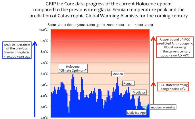 Das Establishment behauptet dreist, dass das vom Menschen verursachte CO2 der wichtigste «Steuerknüppel» des globalen Klimas ist, eine absurde Behauptung, die nicht durch empirische Daten gestützt wird und gegen den gesunden Menschenverstand verstösst. Diese Behauptung lässt sich leicht widerlegen, indem man sich unter anderem die in dieser Rekonstruktion dargestellten globalen Temperaturveränderungen der letzten Jahrtausende ansieht, die, wie ich zeigen werde, gut mit den historischen Daten übereinstimmen. Beginnend vor ca. 6000 Jahren zeigt sie, dass die Temperaturen deutlich wärmer waren als heute, was erklärt, warum Orkney in dieser frühen Zeit so erstaunlich florierte.