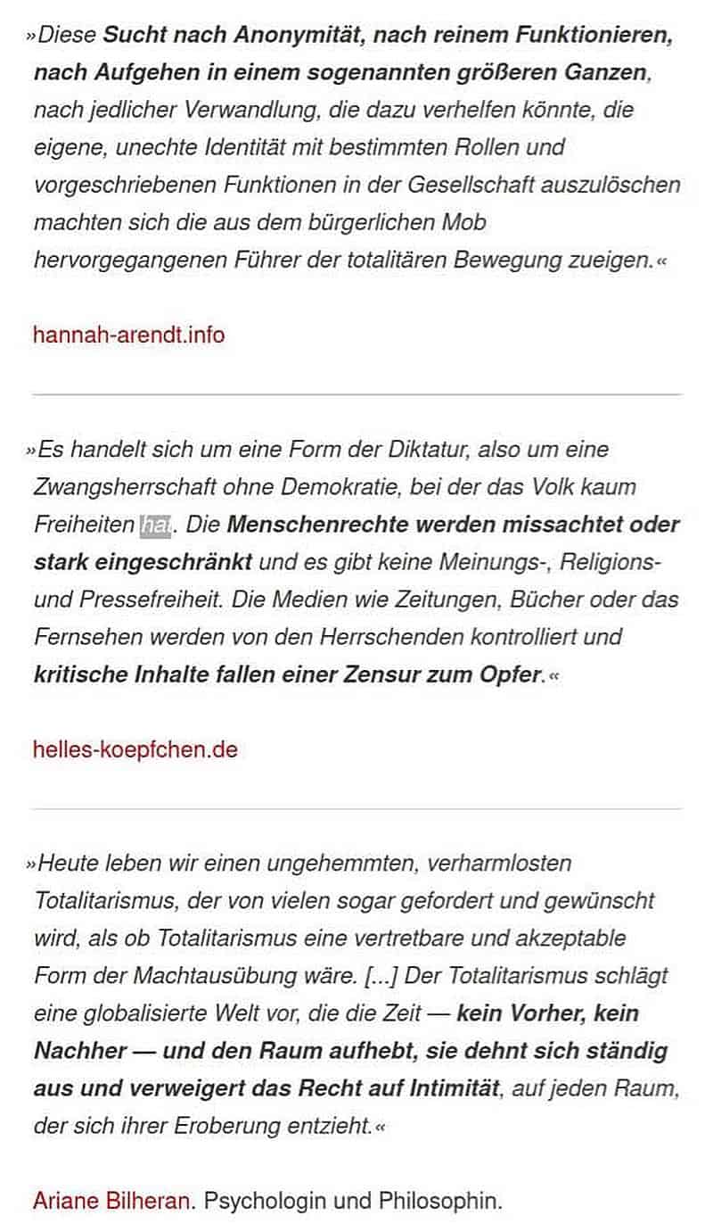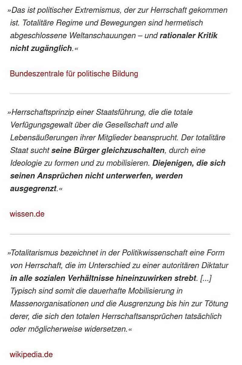 Synonyme für Totalitarismus sind übrigens Zwangsherrschaft, Terror, Despotie, Schreckensherrschaft,… und NEUERDINGS auch Solidarität!