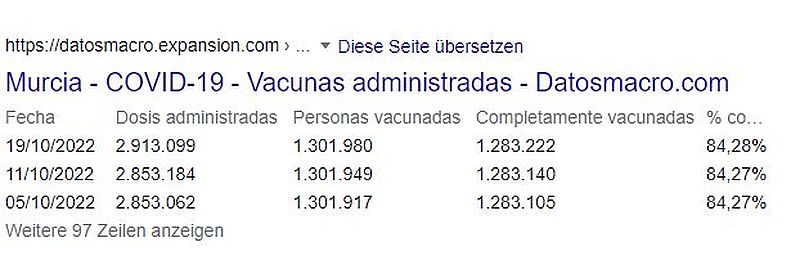Kleines Bonmot zusätzlich: Impfrate in der Bevölkerung in Murcia offziell: 84 Prozent: