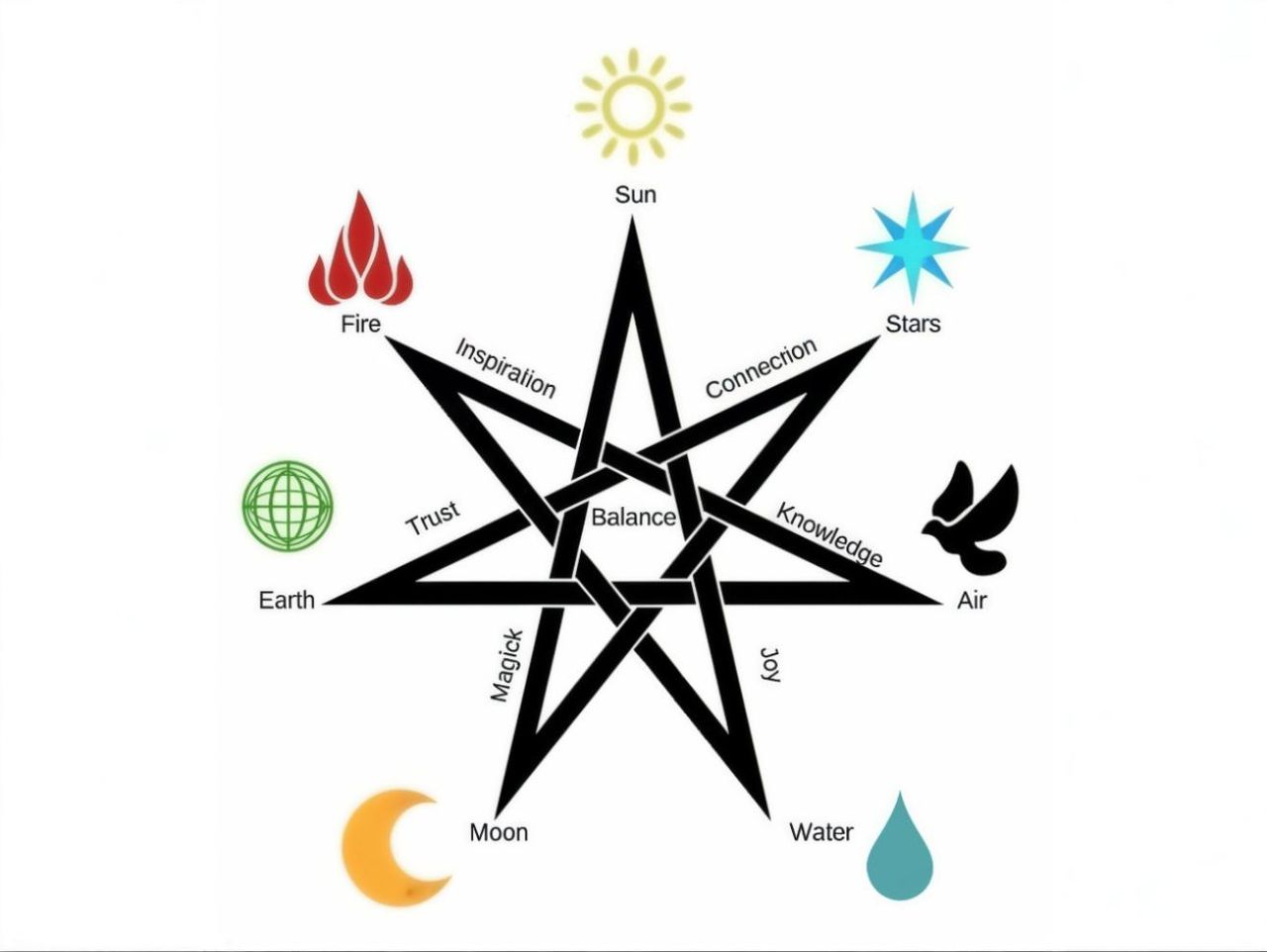 Im Herzen des Sterns liegt das Gleichgewicht – der heilige Punkt, an dem alle Energien zusammenlaufen. Es erinnert uns daran, dass Harmonie in uns selbst und mit der Welt um uns herum für Ausrichtung und Wachstum unerlässlich ist.