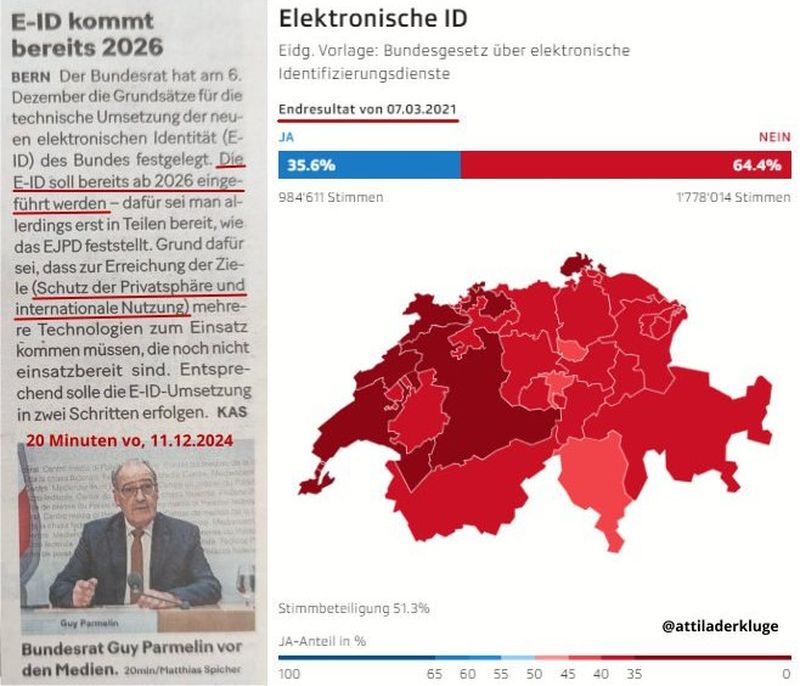Wir können stolz sein auf die Schweiz und unsere direkte Demokratie. Da sagt eben noch das Volk wie der Hase läuft… das wievielte Mal ist es eigentlich, dass auf den Wählerwillen geschissen wird? Die grössten Demokratiefeinde sitzen heutzutage in den Regierungen, der Wirtschaft und der Presse. Nun denn, immer schon weiter auf Kurs der transatlantischen Globalisten, die alles orchestrieren und «Demokratie» vorgaukeln. Jedes Volk hat die Regierung, die es verdient! 🥳🤡