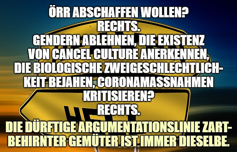Gendern ablehnen, die Existenz von Cancel Culture anerkennen, die biologische Zweigeschlechtlichkeit bejahen, Coronamassnahmen kritisieren?