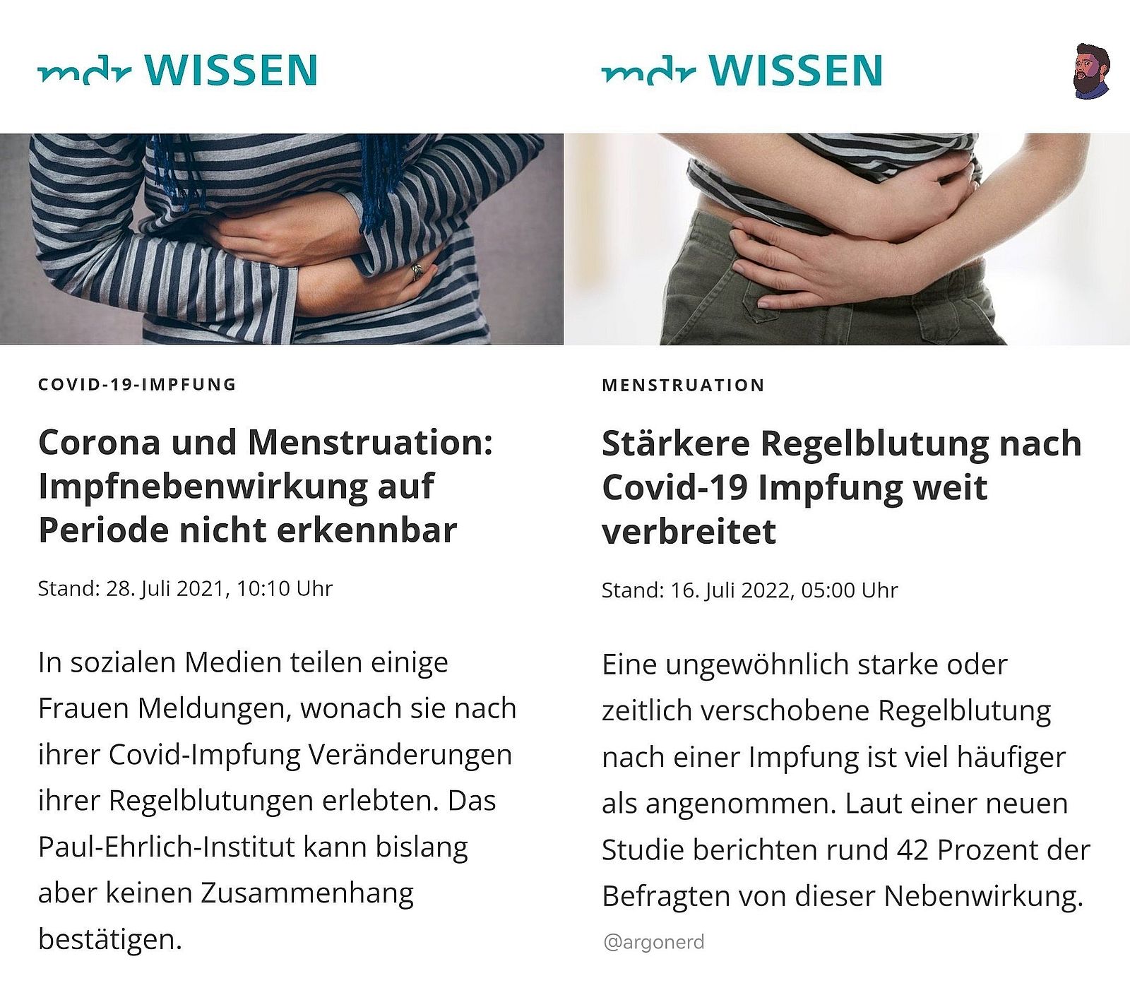Zyklusstörungen sind seit der Impfung ein großes Problem, viele Frauen die schon in der Menopause und drüber waren, haben plötzlich wieder starke Blutungen bekommen, bei vielen jungen Frauen u.a. auch oder im Gegenteil, sie blieb teilweise über Monate aus. Aber es gibt selbstverständlich nichts zu hinterfragen, die Impfung ist sicher! Meine Damen und Herren, bitte gehen sie weiter, es gibt hier nichts zu sehen…