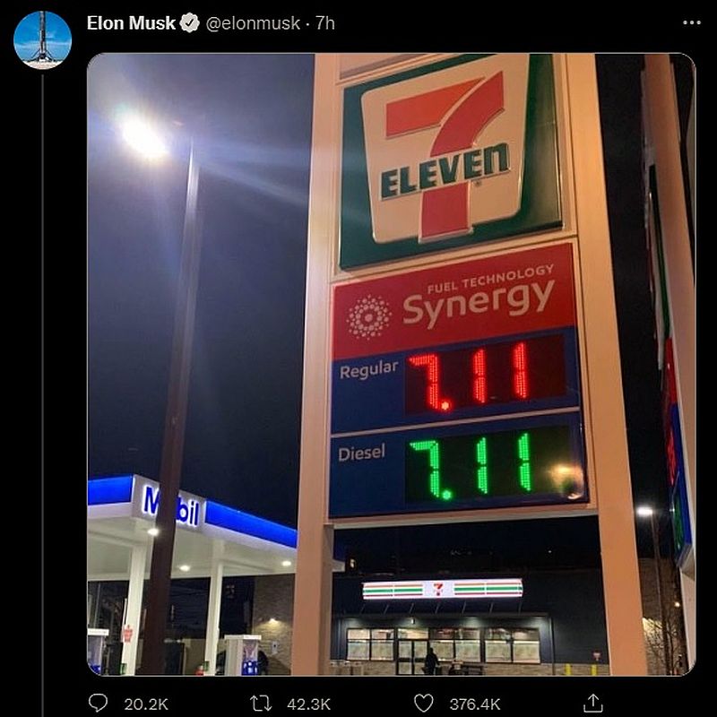 Die Ironie an diesem Bild ist, dass der reichste Mann der Welt die Spritpreise kennt… der deutsche Nochkanzler… nicht.