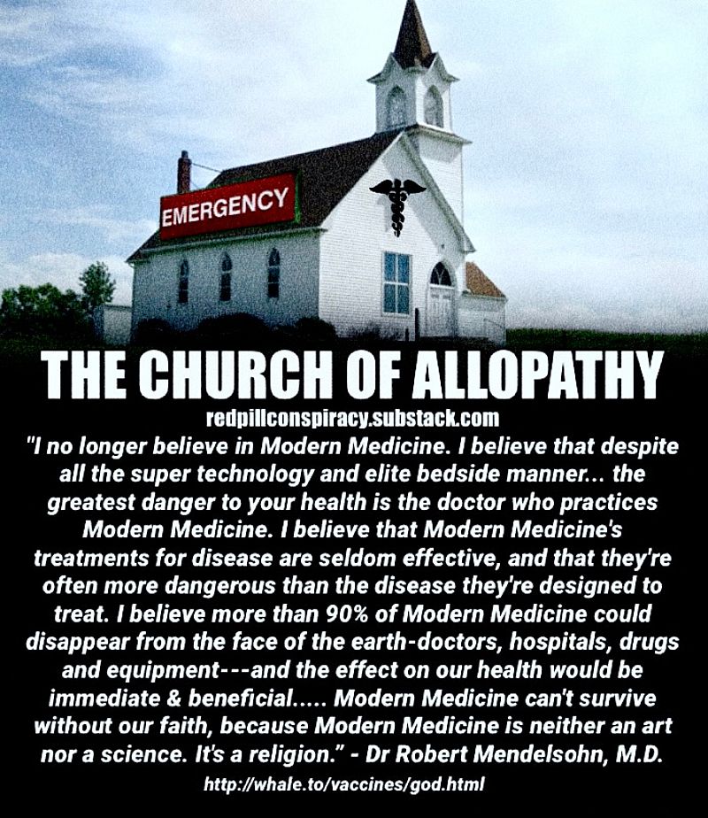 Ich glaube nicht mehr an die moderne Medizin. Ich glaube, dass trotz all der Supertechnologie und der Elite am Krankenbett… die größte Gefahr für Ihre Gesundheit der Arzt ist, der moderne Medizin praktiziert. Ich glaube, dass die Behandlungsmethoden der modernen Medizin selten wirksam sind und dass sie oft gefährlicher sind als die Krankheit, die sie behandeln sollen. Ich glaube, dass mehr als 90 % der modernen Medizin von der Bildfläche verschwinden könnten – Ärzte, Krankenhäuser, Medikamente und Geräte – und die Auswirkungen auf unsere Gesundheit wären sofort und positiv… Die moderne Medizin kann ohne unseren Glauben nicht überleben, denn die moderne Medizin ist weder eine Kunst noch eine Wissenschaft. Sie ist eine Religion.
