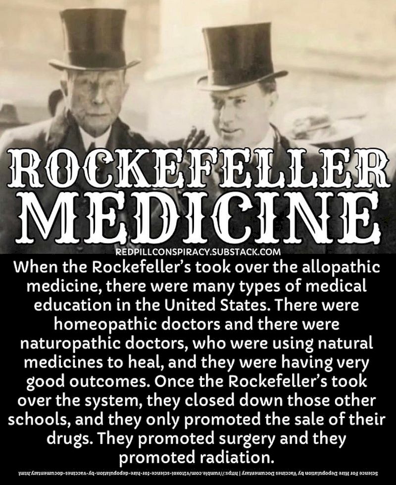 Als die Rockefellers die allopathische Medizin übernahmen, gab es in den Vereinigten Staaten viele Arten der medizinischen Ausbildung. Es gab homöopathische Ärzte und naturheilkundliche Ärzte, die natürliche Medikamente zur Heilung einsetzten und sehr gute Ergebnisse erzielten. Als die Rockefellers das System übernahmen, schlossen sie diese anderen Schulen und förderten nur noch den Verkauf ihrer Medikamente. Sie förderten die Chirurgie und die Bestrahlung.