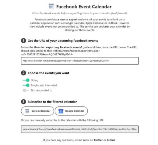 Der Grund ist, dass Facebook auch Veranstaltungen exportiert, auf die noch nicht geantwortet wurde. Da Google und andere Anbieter das iCal-File genauer validieren, als Facebook diese exportiert, kommt es zu Fehlern beim Import oder der Synchronisation. Simon Bengtsson hat ein Web-Applikation Namens «Facebook Event Calendar» geschrieben, welche den Facebook-Export filtert und die fehlerhaften Ereignisse löscht. Den Source-Code findet ihr übrigens bei Github. Wer nicht genau weiss, von welchen URLs hier die Rede ist und wo man diese bei Facebook findet, resp wie er dies in den Google Kalender kriegt, findet hier ein Anleitung dazu. Einfach als Zwischenschritt den Filter von Simon dazwischen klemmen und endlich klappt die Synchronisation wieder wie es soll!