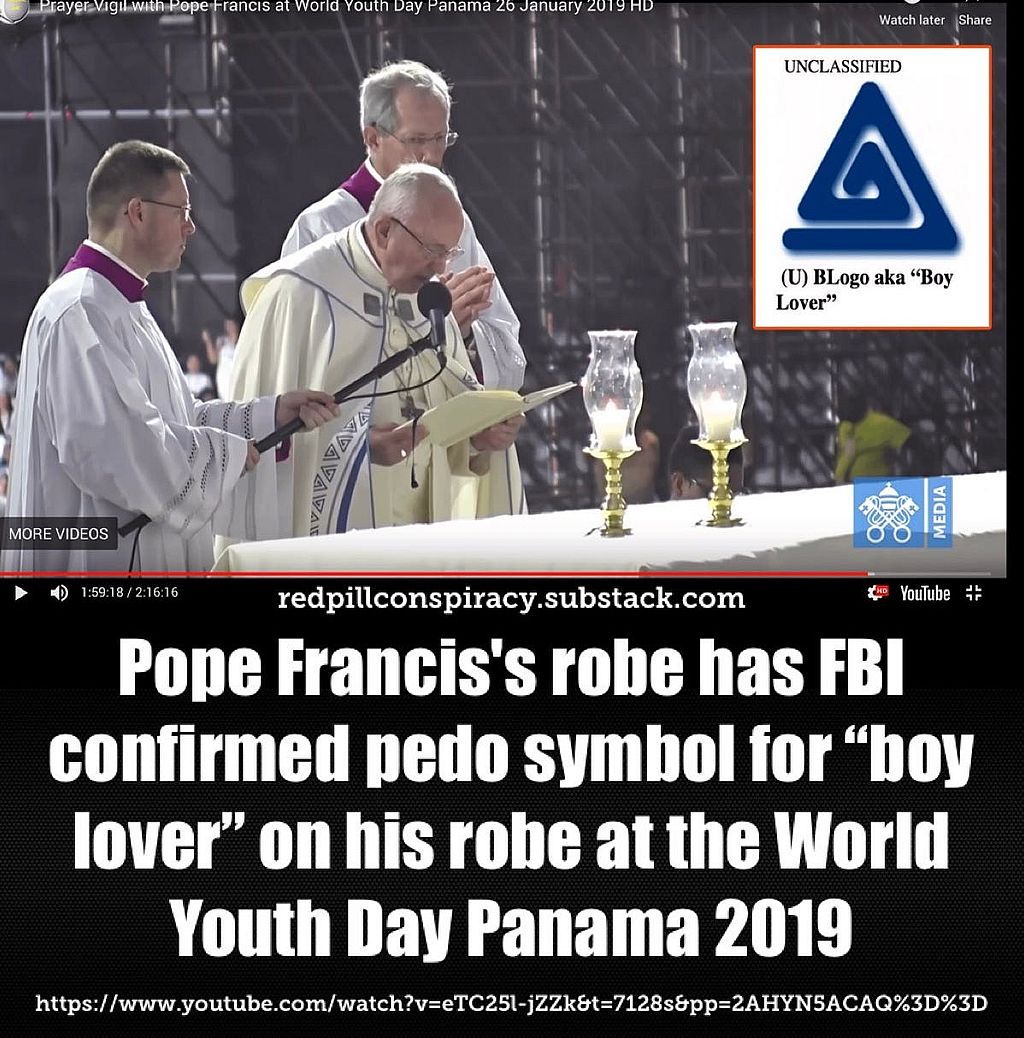 Papst Franziskus hat das vom FBI bestätigte Pädophilen-Symbol für «Boy Lover» auf seinem Gewand beim Weltjugendtag Panama 2019