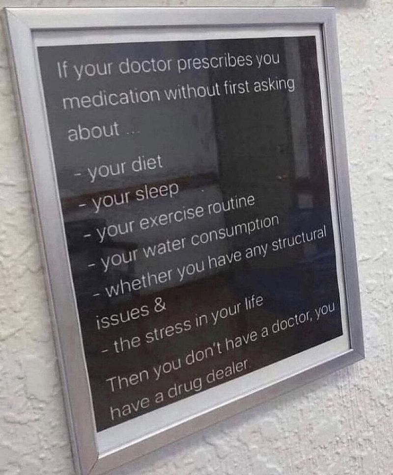 Wenn dein Arzt dir Medikamente verschreibt, ohne vorher mit dir ein ausführliches Gespräch geführt zu haben, dann hast du keinen Arzt, sondern einen Drogen Dealer.