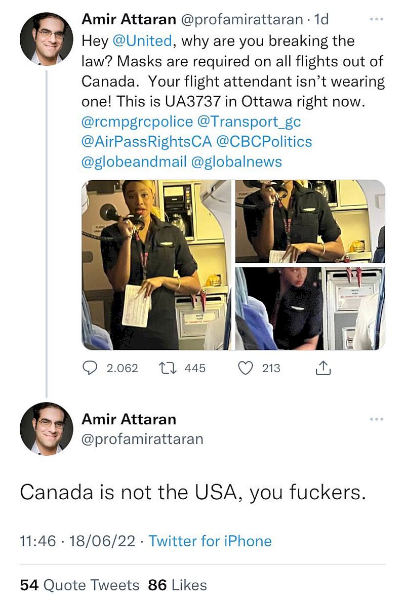 Und vergessen wir nicht die professoralen Spitzel wie Amir Attaran die Nicht-Maskenträger verpfeifen. Ich verachte diese Art von Möchtegern-Gestapo. Sie sollten zur Rechenschaft gezogen werden und Konsequenzen für ihr Verhalten tragen.