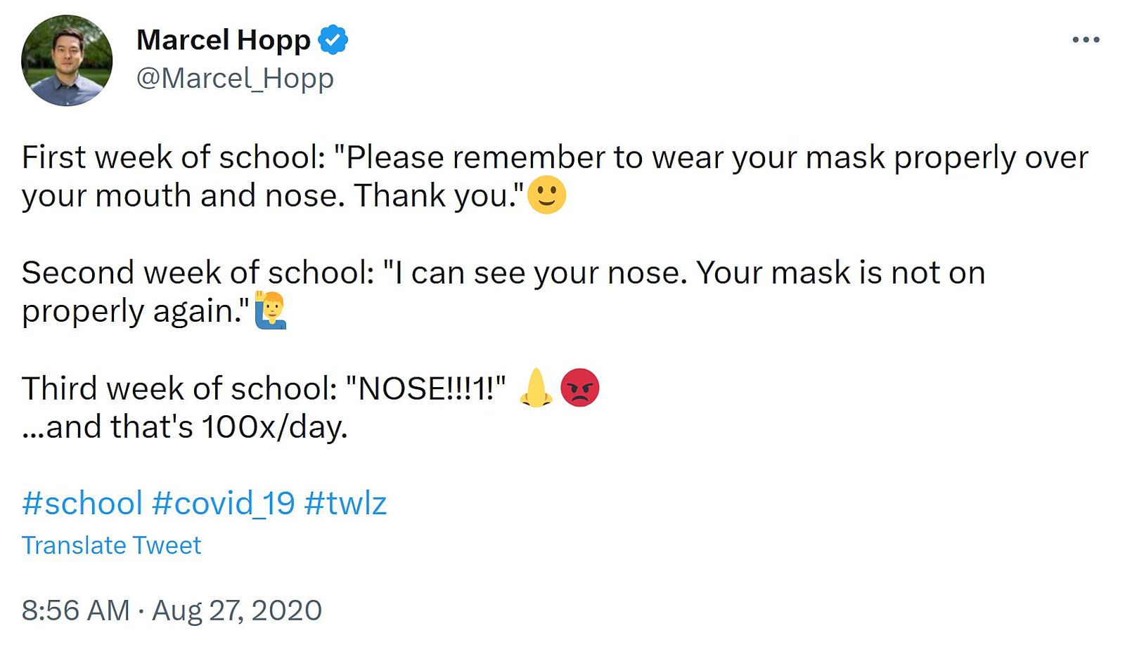 Sozialistische Lehrer wie Marcel Hopp machten sich einen Spass daraus, Schüler mit Masken und PCR-Tests zu quälen und prahlten sogar im Internet damit. Bildung oder Tyrannei?