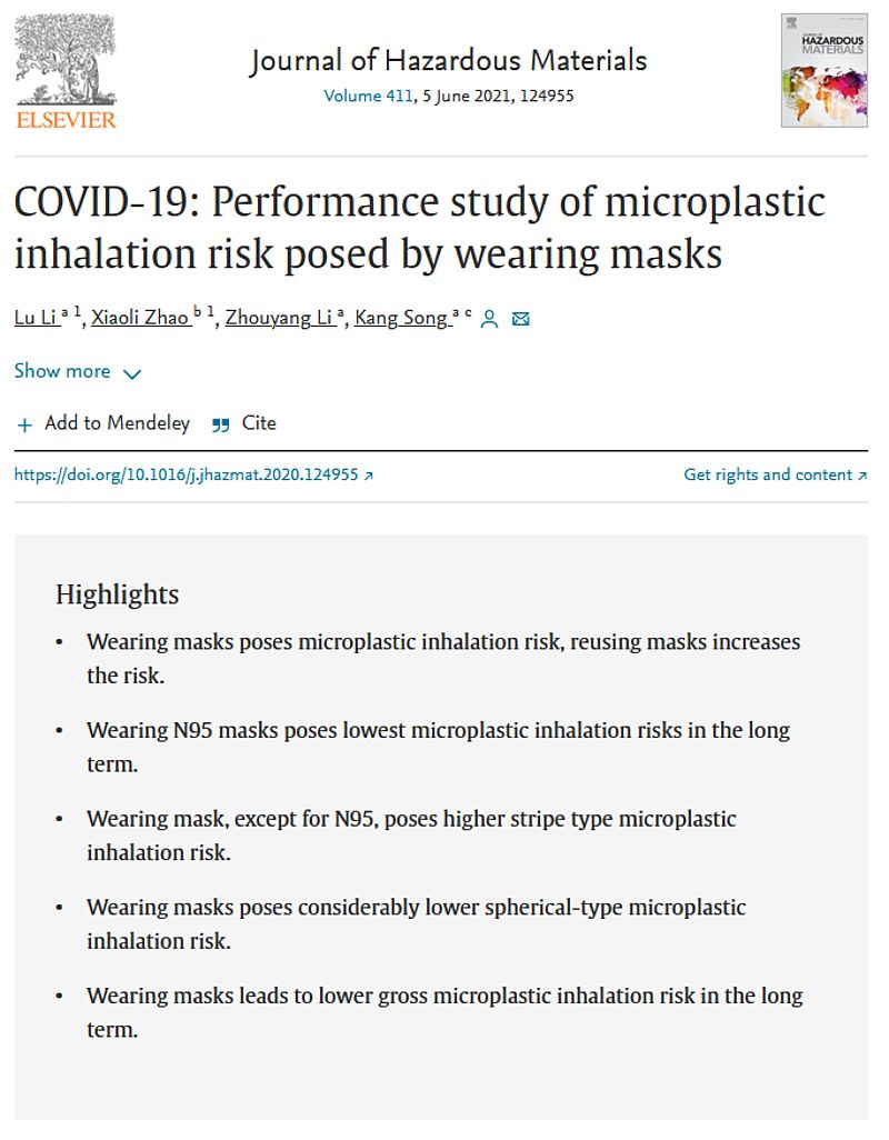 Chirurgische, Baumwoll-, Mode- oder Aktivkohlemasken erhöhten alle das Inhalationsrisiko im Einatmen von Fremdstoffen wie das selten berichtete Risiko des Einatmens von Mikroplastik aus Masken.