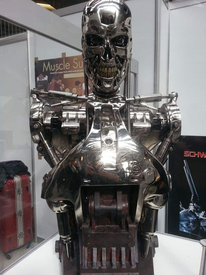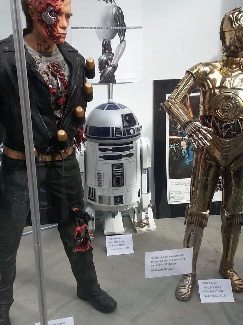Zum 25 Jahre Jubiläum und Weltkongress «Robots on Tour» des Labors für Künstliche Intelligenz der Universität Zürich (AI Lab) waren gestern Samstag Roboter, Cyborgs, Interessierte und Robotik Fans aus der ganzen Welt nach Zürich, mitten ins Industriequartier, in die Giessereihalle Puls 5 gepilgert, um Roboter aus Korea, Japan, USA und Europa zu sehen. Nebst der Präsentation des «Star» Roboters Roboy sorgten ein Weltrekordversuch eines Gehroboters, eine Roboterflugshow, ein Robotertheater und echte Filmroboter wie C-3PO, R2-D2, dem Terminator und Sonny aus I, Robot für Unterhaltung. Die Finanzierung für Roboy fand unter anderem per Crowdfunding statt und wie regelmässige Leser der Gruft wissen, habe ich für das Projekt gespendet und wollte daher auch sehen, ob das Dravens Tales from the Crypt Logo, sprich mein Schädel auf dem Rücken des humanoiden Roboy tatsächlich platziert wurde.