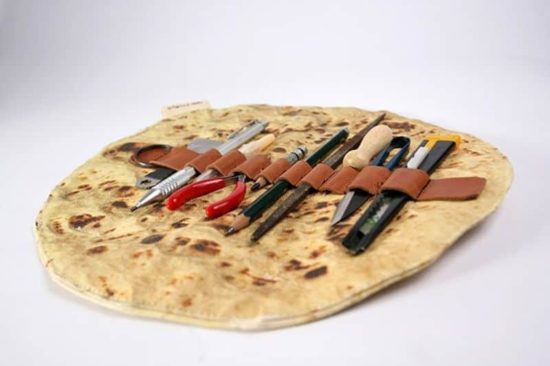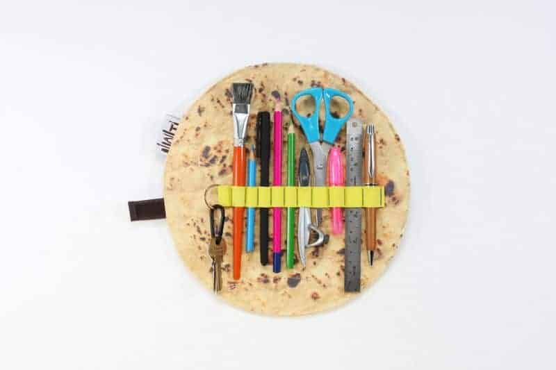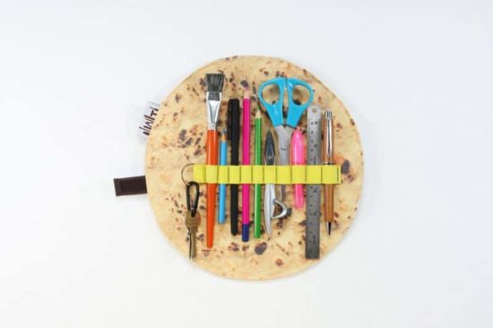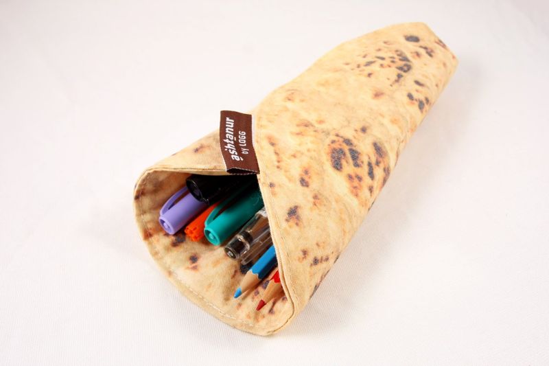 Mit scharf und alles kommt dieses stylische Mäppchen daher. Die «Ashtanur»-Federmappe des israelischen Designers Ido Mohar wird allerdings nicht mit Fleisch, Falafel und Gemüse gefüllt, sondern bietet genug Platz für Stifte, Pinsel und Scheren. Ist sie fertig gefüllt, wird sie einfach zusammengerollt und verstaut. Für jeden, der sein geliebtes Fladenbrot auch in der Schule oderan der Uni immer bei sich haben möchte. Gibt es im Etsy Shop von LOGGdesignstudio ab rund 18 €…