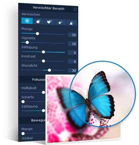 Wenn Du dich für ein Programm entschieden hast, öffnest Du dieses und wählst anschliessend ein Foto aus, das Du bearbeiten möchtest. Zunächst kannst Du das Foto zuschneiden oder drehen, wenn nötig. Anschliessend wählst Du die Bildbereiche aus, die unscharf sein sollen. Dazu nutzt Du am besten ein Werkzeug ohne feste Form, mit dem Du die gewünschten Bereiche frei auswählen kannst. Diese bearbeitest Du schliesslich mit einem Weichzeichnungs-Filter. Die Funktion trägt in den verschiedenen Programmen unterschiedliche Namen. Sie kann unter anderem Weichzeichnen, Fokuseffekt, Brennpunkt-Unschärfe oder Verwischen heissen. Hier stellst Du genau ein, wie stark der ausgewählte Bereich verwischt werden soll und wie gross der Übergang zwischen scharfen und unscharfen Bereichen sein soll. Damit erzeugst Du individuelle Effekte. Auf dem Smartphone ziehst Du den Filter mit den Fingern in die gewünschte Position. Anschliessend kannst Du das Bild zum Beispiel direkt auf Instagram, Facebook, Pinterest oder Deinem Blog hochladen.