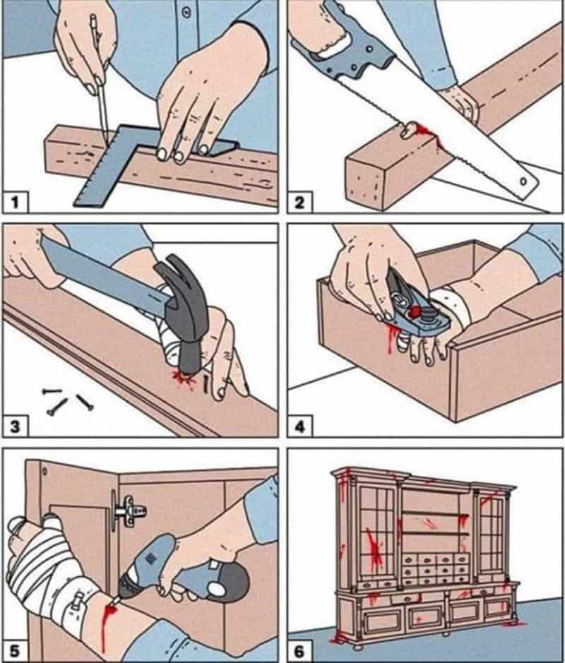 Hier eine äusserst ehrliche und realitätsnahe Visualisierung einer Anleitung zum Möbelbau…