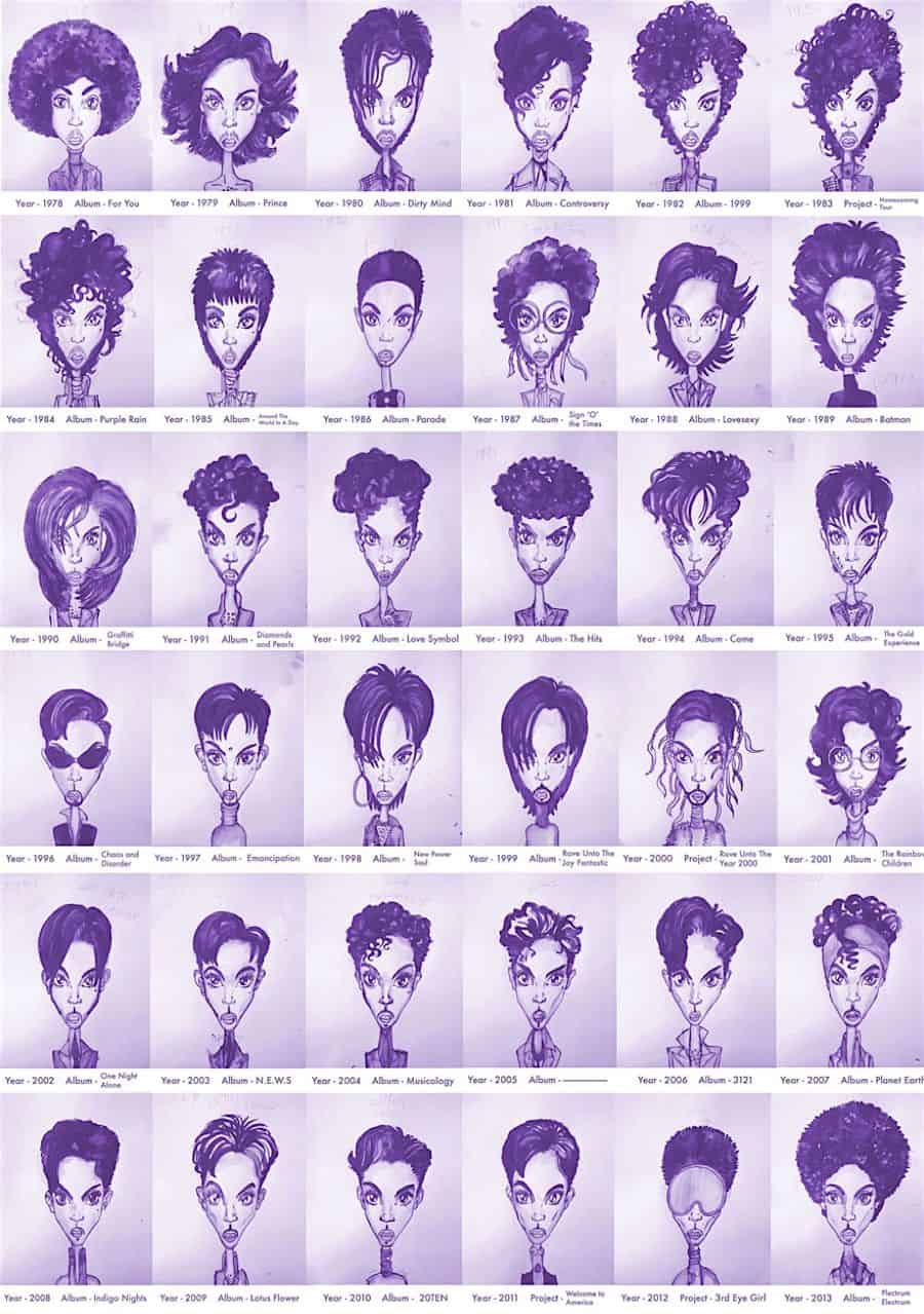 Gestern erreichte uns die ebenso überraschende wie traurige Nachricht, dass Prince mit gerade einmal 57 Jahren verstorben ist. Neben seiner Musik wird uns vor allem seine Wandlungsfähigkeit in Erinnerung bleiben. Nicht nur änderte Prince im Laufe seiner fast 40 Jahre andauernden Karriere sieben Mal seinen Namen – unter anderem in ein unaussprechliches Symbol – er wandelte sich auch äusserlich unzählige Male, was Illustrator Gary Card grafisch umgesetzt hat. Gestern starb nicht nur ein grosser Musiker, sondern auch eine Stilikone.