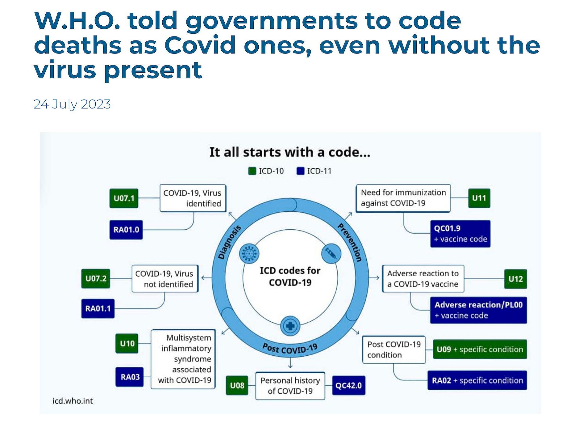 Dieses Dokument mit dem Titel: «INTERNATIONAL GUIDELINES FOR CERTIFICATION AND CLASSIFICATION (CODING) OF COVID-19 AS CAUSE OF DEATH Based on ICD International Statistical Classification of Diseases» (Internationale Richtlinien für die Bescheinigung und Klassifizierung von COVID-19 als Todesursache auf der Grundlage der Internationalen statistischen Klassifikation der Krankheiten) zeigt deutlich, auch mit Bildern, dass die WHO von den Ländern verlangte und verlangt, Todesbescheinigungen zu fälschen, um mehr COVID-19-Todesfälle zu kodieren, als es tatsächlich gab.
