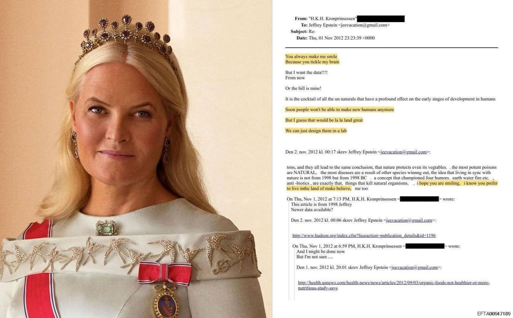 Die norwegische Kronprinzessin Mette-Marit schrieb Jeffrey Epstein im Jahr 2012 einen Satz, der in einer gesunden Welt für kollektive Schockstarre sorgen würde: «Bald werden die Menschen keine neuen Menschen mehr erschaffen können… Wir können sie einfach im Labor designen.»