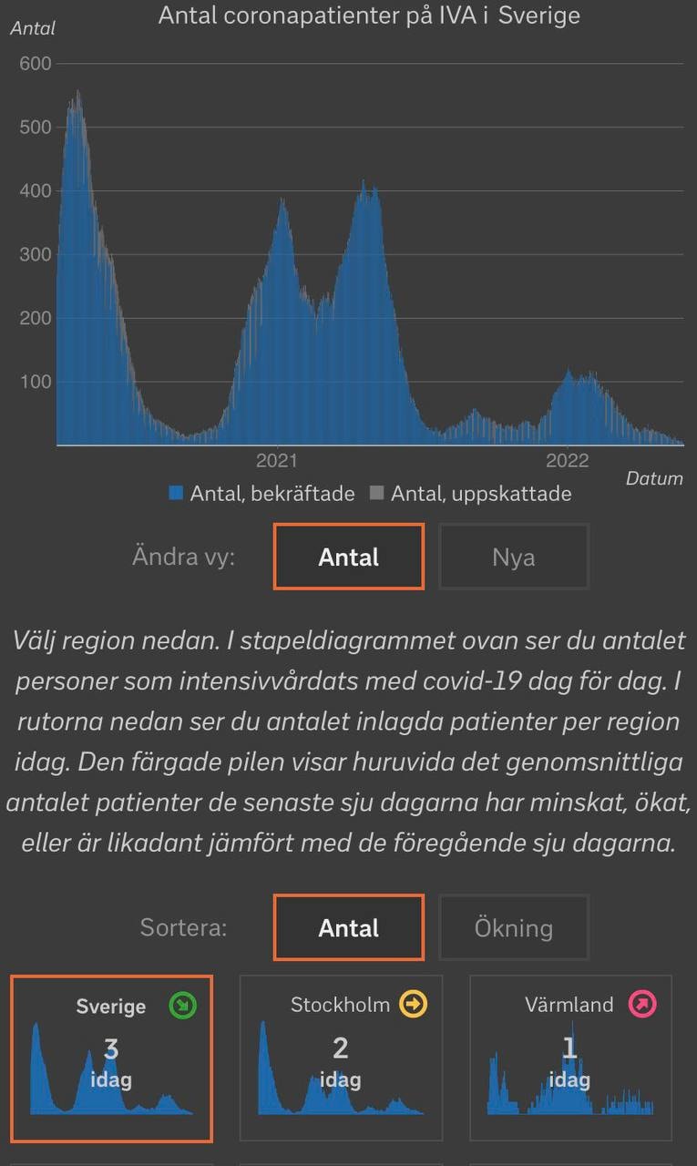 Übrigens, über Schweden hatte man sich noch vor einem Jahr das Maul zerrissen – nun hört man gar nichts mehr. Sind da alle gestorben? Mitnichten, die Anzahl der Corona-positiv getesteten Patienten auf ITS im ganzen Land mit 10,5 Mio Einwohner, das seit 115 Tagen oder 16 Wochen alle Corona-Massnahmen aufgehoben hat: