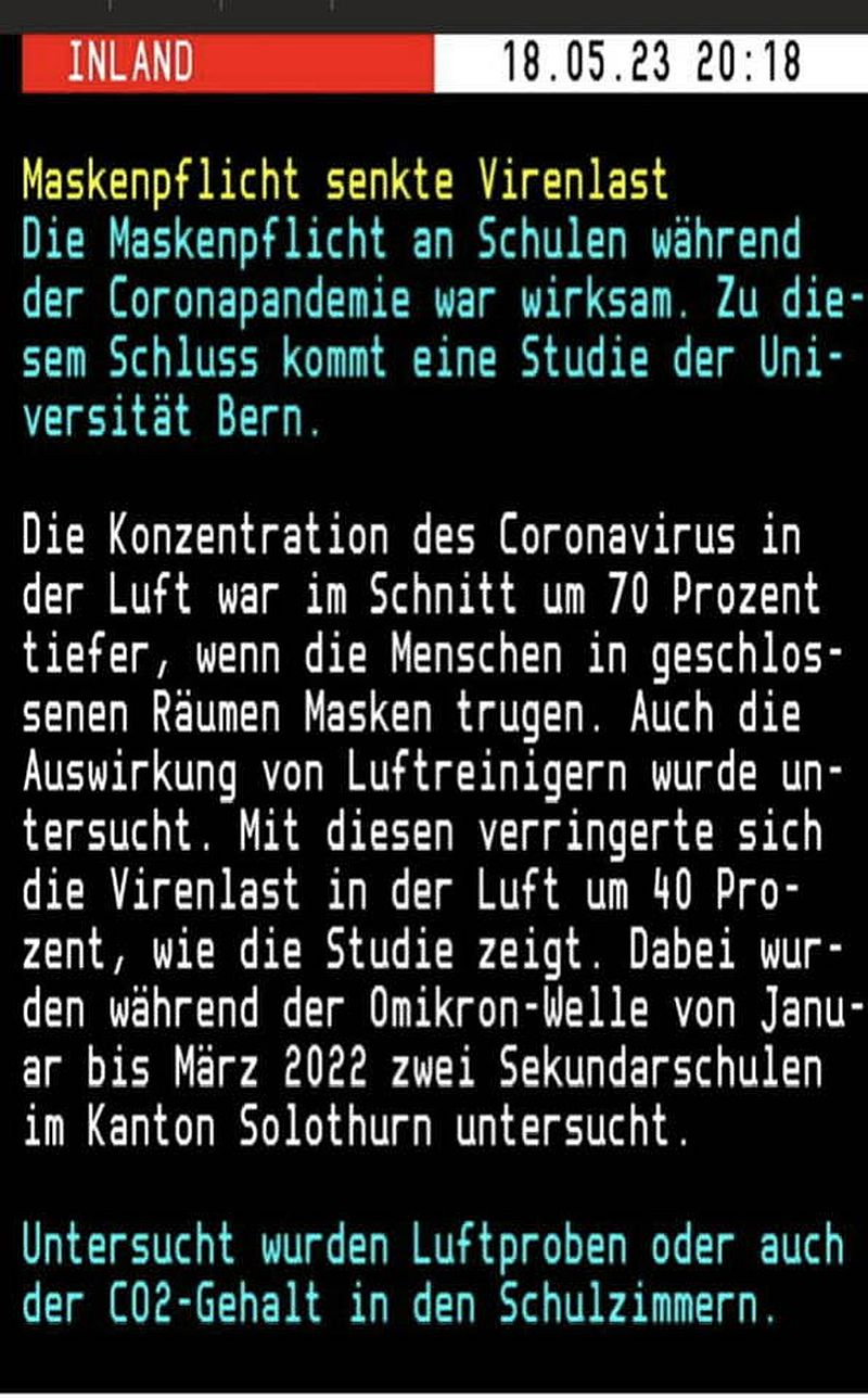 Da stellt sich mir doch die Frage, wie bitteschön soll die «Virenlast in einem Raum» wegen Masken geringer sein? Man kann ja die Ideologie pflegen zu meinen, dass Masken die Viren anders verteilen. Aber solange die Masken nicht aus Schwarzen Löchern genäht werden, ist die Virenlast «in einem Raum» logischerweise identisch wie ohne Masken – und sowas sollte durchaus auch einer Uni bekannt sein. Die Viren verschwinden ja nicht plötzlich durch das Maskentragen. Auch sonst kann man diese «Studie» nur als äusserst fragwürdig ansehen, da diese nur «zwei Schulen» analysiert wurde. ZWEI Schulen. Und selbstverständlich «berichten» unsere «Qualitätsmedien» kritiklos darüber…