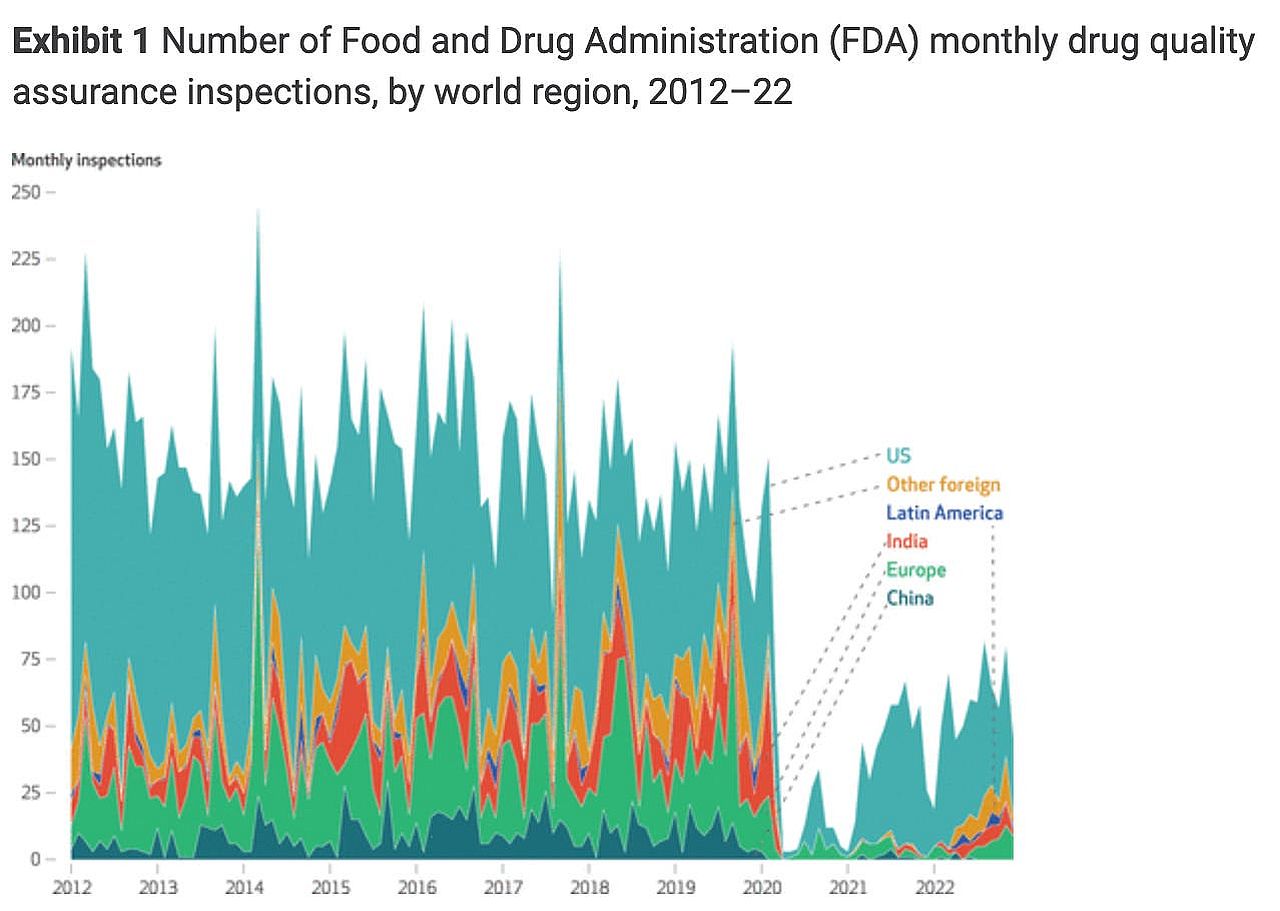 Bild 1: Die FDA hat zwischen April 2020 und März 2021 keine Inspektionen in China oder Indien durchgeführt.