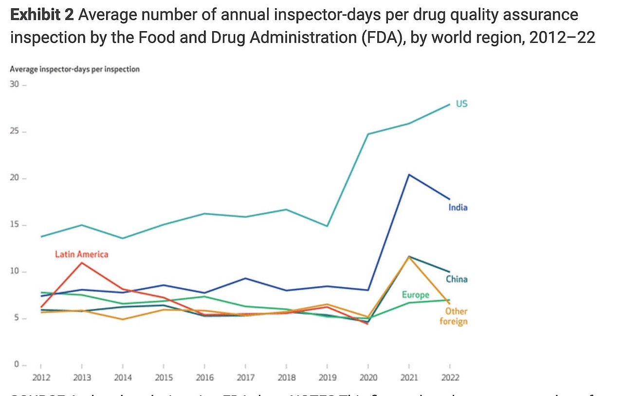 Ein Grossteil der derzeitigen Arzneimittelversorgung wird im Ausland in Anlagen hergestellt, die sich im Wesentlichen selbst überwachen, da die FDA sich auf die Inspektion und Überwachung vor Ort verlassen hat. Die FDA geht davon aus, dass diese Qualitätskontrollen gemäss den US-Vorschriften durchgeführt werden. Soweit eine unabhängige Überwachung von importierten Arzneimitteln und biologischen Produkten durchgeführt wurde, deuten die Daten darauf hin, dass das «Vertrauen» der FDA in diese Offshore-Qualitätskontrollen unangebracht ist.