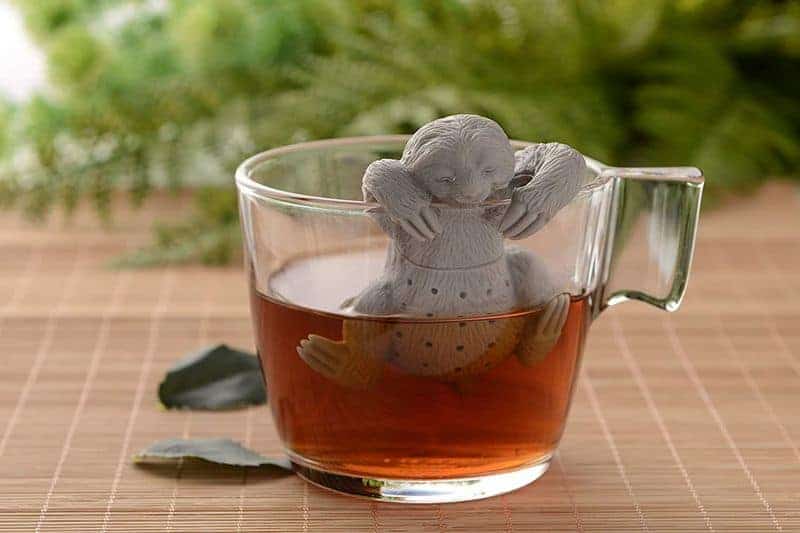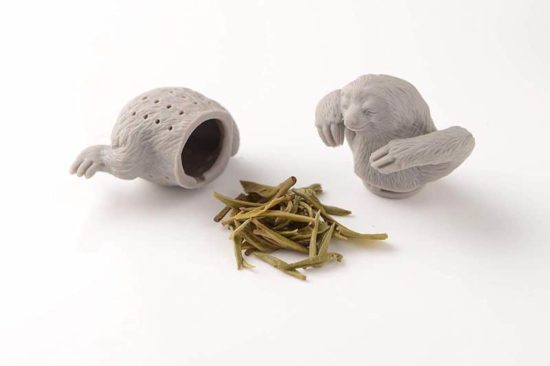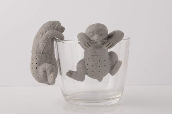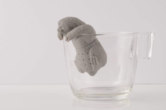 Einfach das Bäuchlein des Faultiers mit Teeblättern befüllen, um anschliessend den Tassengast ins heisse Wasser zu setzen und eine Weile ziehen zu lassen. Feinmaschig und aus hochwertigem Silikon, hier zu haben für schlappe 4,95 €… – sieht irgendwie so aus als würde das Faultier da rein pinkeln…