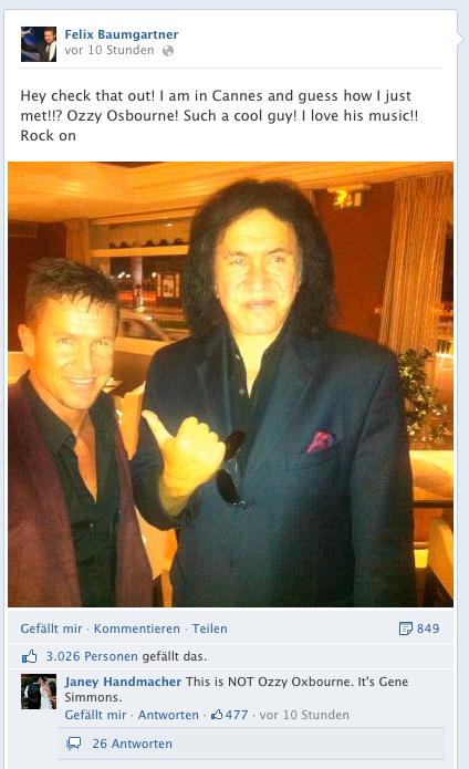 Links Baumgartner, rechts KISS-Legende Gene Simmons, wobei dies Felix nicht ganz bewusst war…