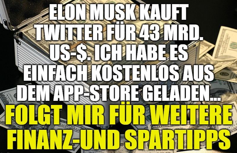 Elon Musk kauft Twitter für 43 Mrd. US-$. Ich habe es einfach kostenlos aus dem App-Store geladen.