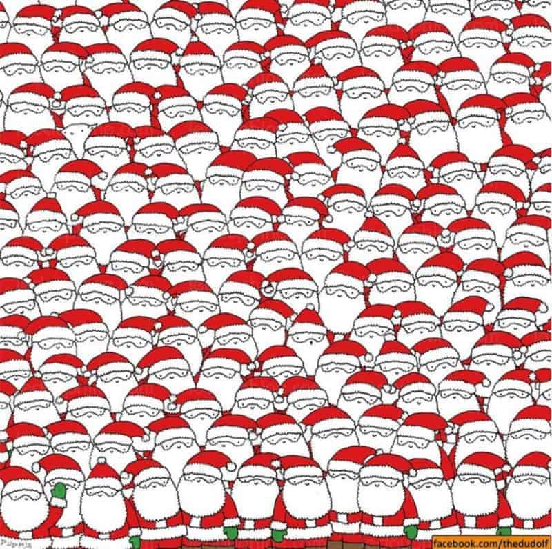 Freunde, seid ihr bereit für ein Suchbild voller Weihnachtsmänner? Der ungarische Künstler Gergely Dudás, alias «Dudolf» hat uns bereits einen Panda zwischen Schneemännern suchen lassen. Dieses Mal suchen wir ein Schaf, das sich in einem Meer von fröhlichen, dicken Männern versteckt…